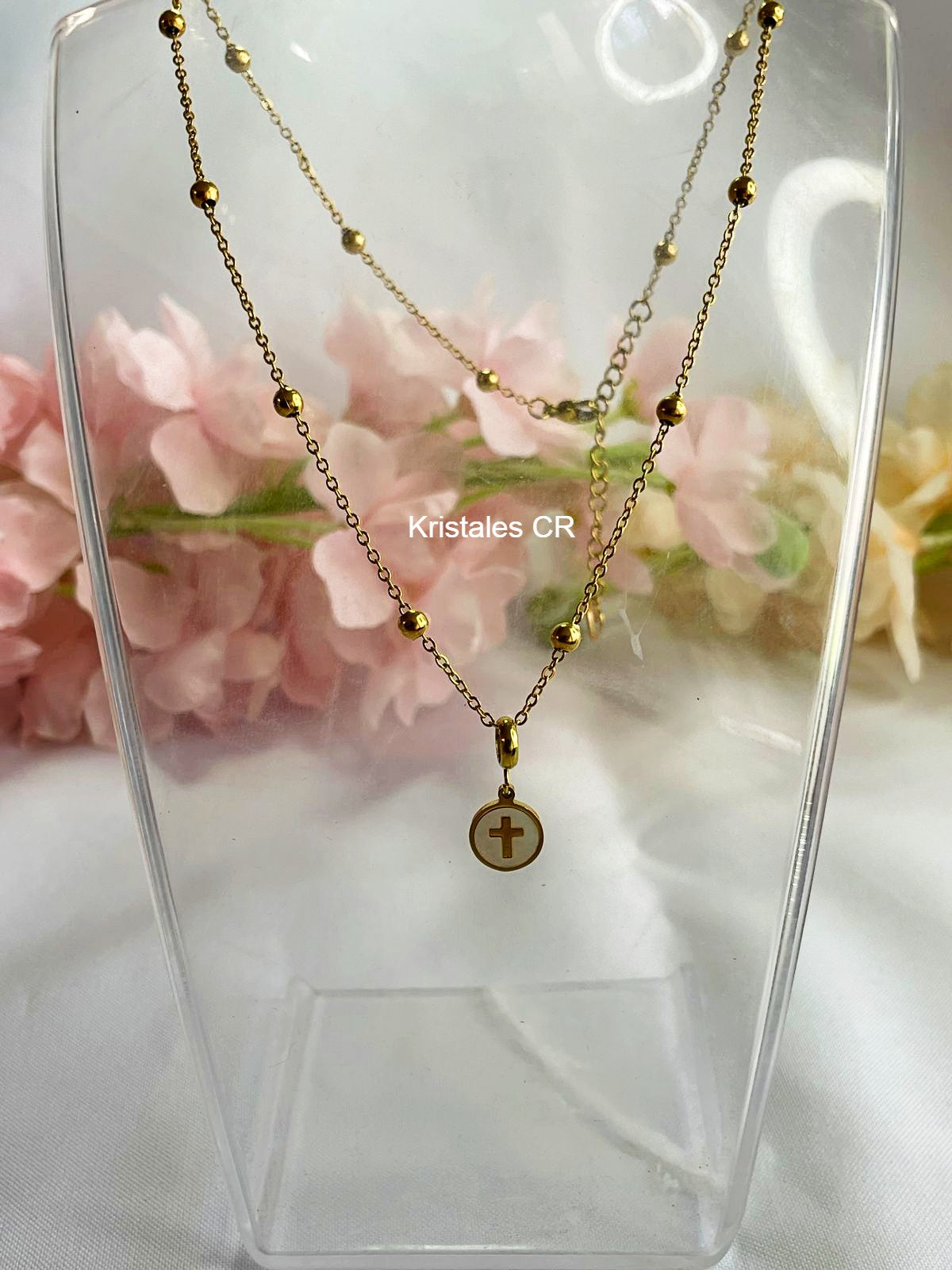 Materiales: Cadena en acero inoxidable, dije en acero inoxidable y concha de nacar